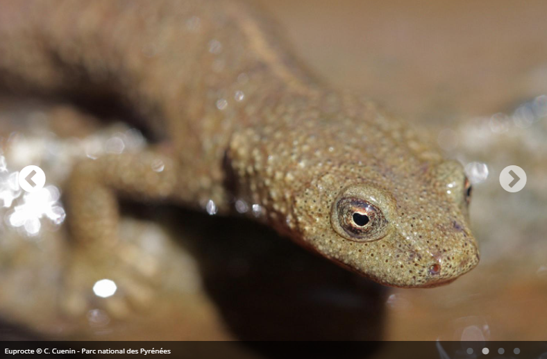 Nous aimerions aussi ajouter un nouveau personnage, un animal endémique de la Réserve naturelle nationale du Néouvielle : le Calotriton, ou Euprocte des Pyrénées (sorte de triton/salamandre) (figure 2). Il vit dans des petits ruisseaux sans courant et passe la majeure partie de sa journée dans l’eau. Celui-ci serait introduit au milieu de l’histoire en tant que guide pour les joueurs.